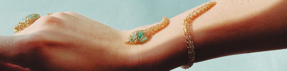 Gold Heart Crochet Choker Necklace: Stainless Steel Charm with Handknitted Gold Plated Wire Chain, Handmade Festive Gift for Her & Family