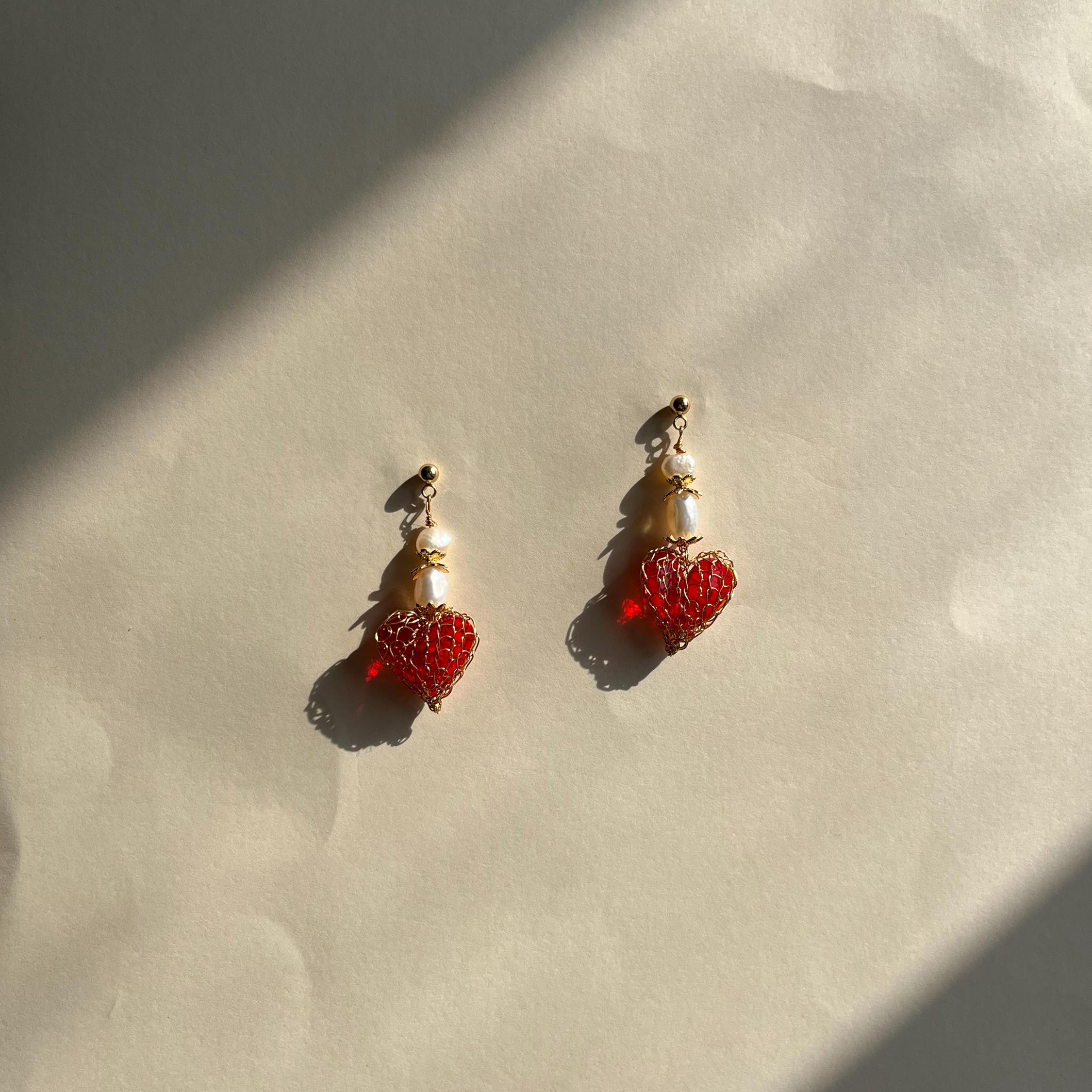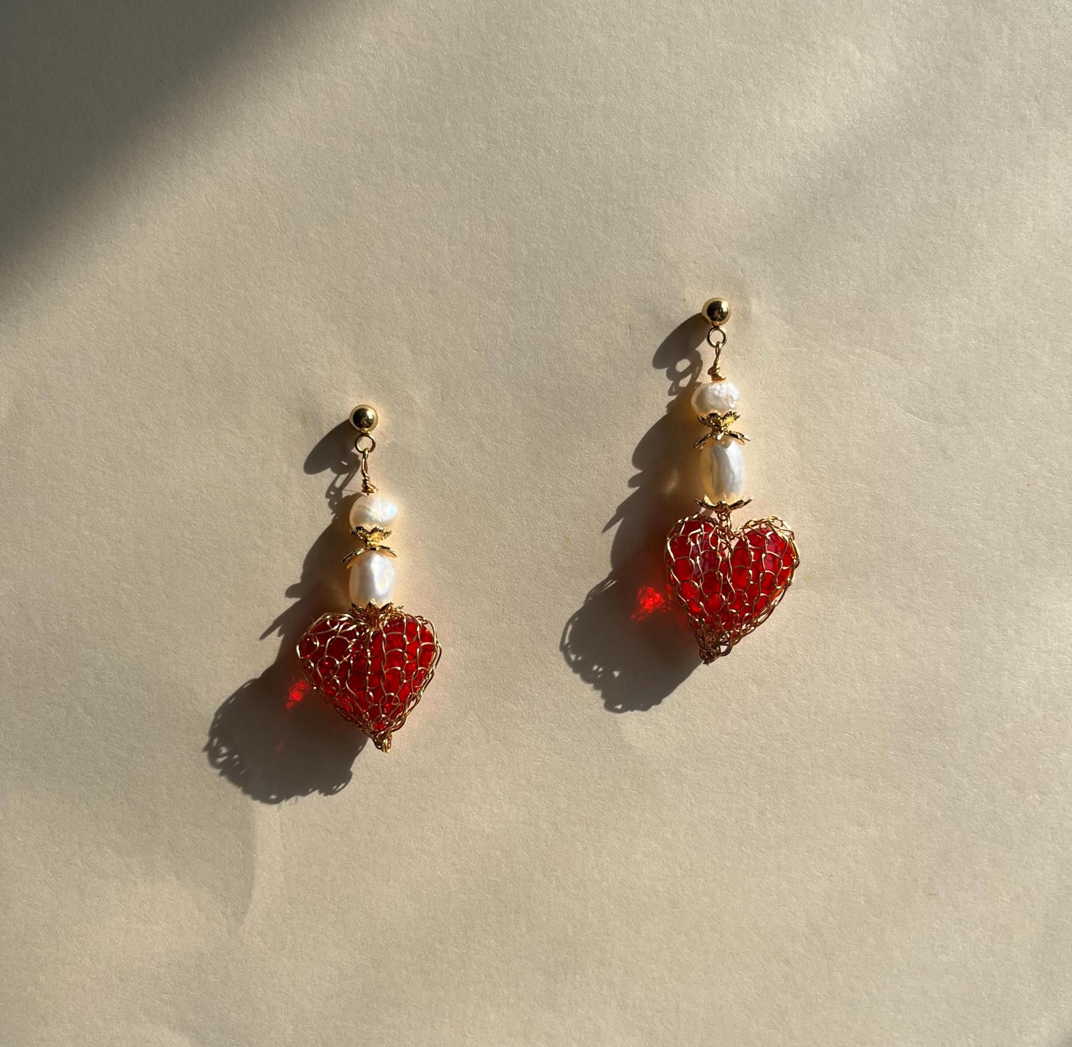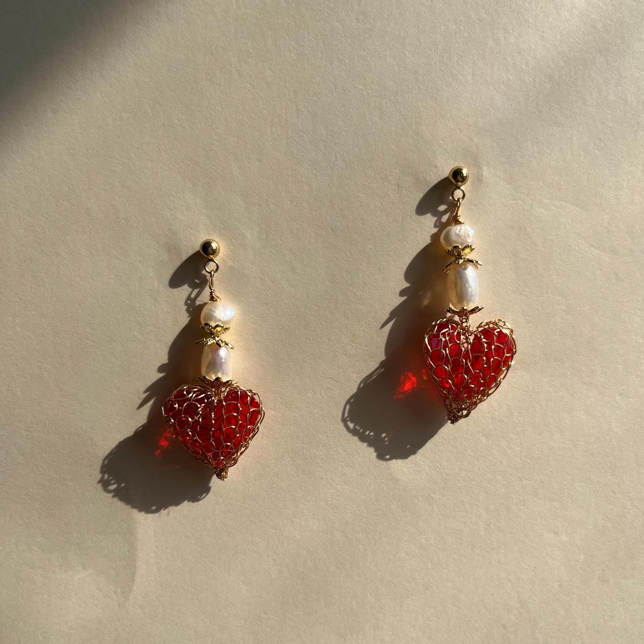 Pair these red glass heart earrings with soft fabrics and warm gold tones for a luminous, feminine finish, a statement of love and artistry, handcrafted just for you.
