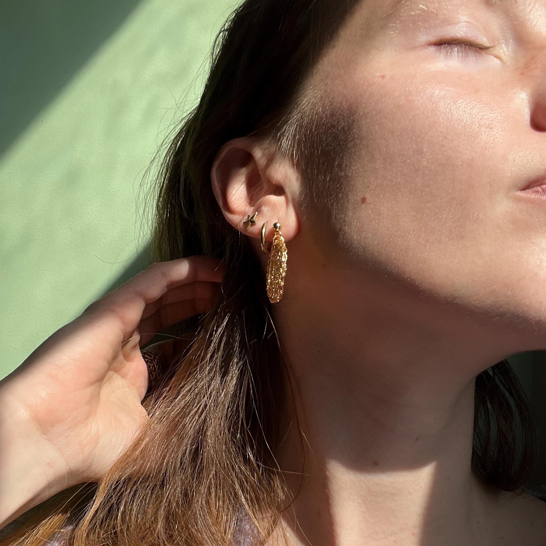 Designed for comfort and longevity, these gold plated earrings are lightweight enough for all-day wear while offering the presence of statement earrings. Their midi length creates an elegant drop that flatters the neckline, making them perfect as everyday gold earrings or a refined accent for evenings and special occasions.