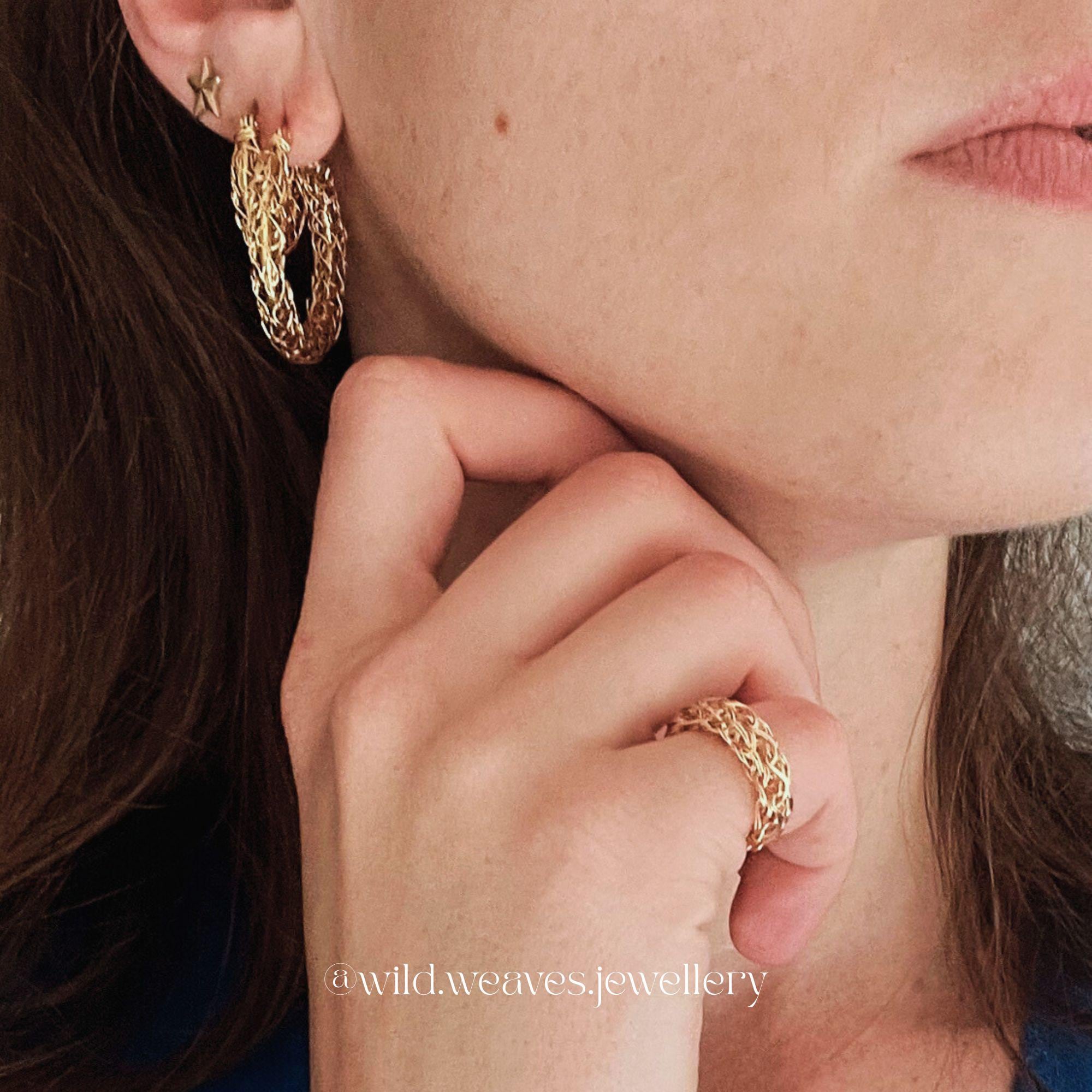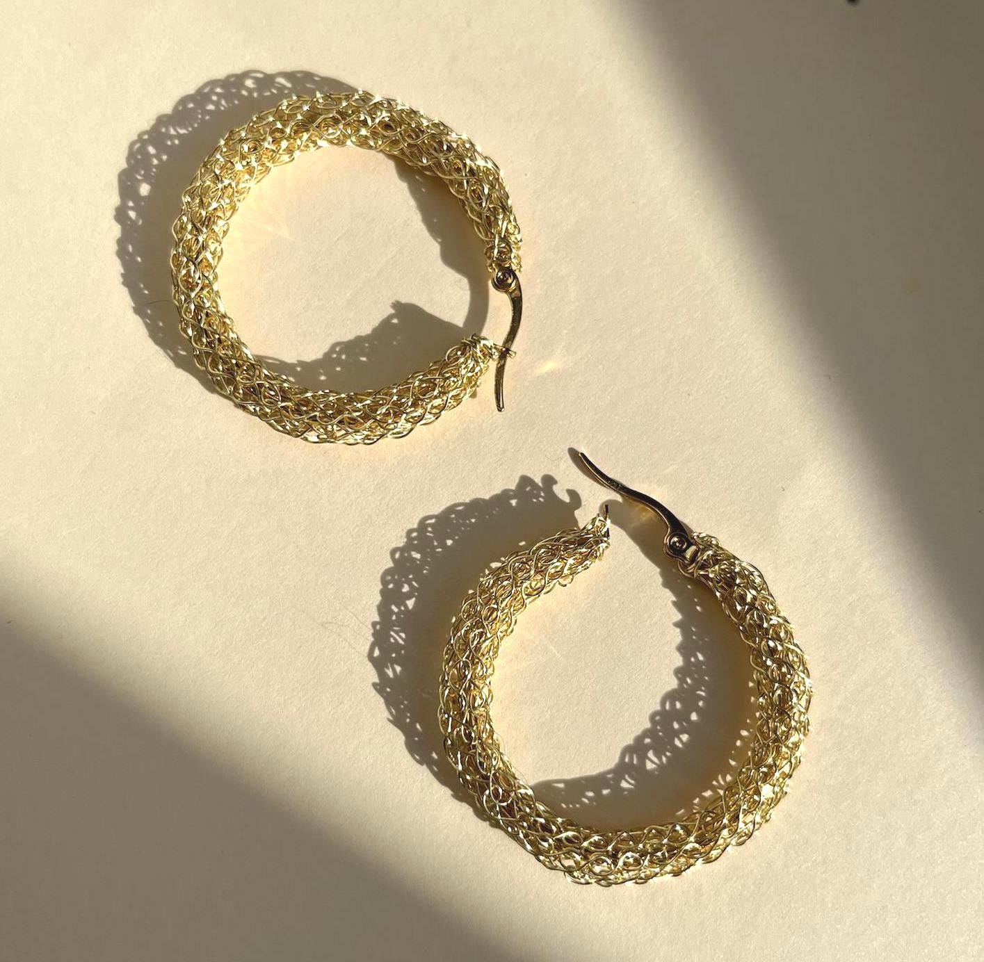 Gold hoop earrings designed to make an effortless statement. These 18k gold plated knitted hoop earrings are handmade textured hoop earrings crafted to elevate everyday gold earrings with sculptural depth and modern elegance. Perfect as statement earrings that feel both bold and wearable, they blend artisanal craftsmanship with contemporary design.