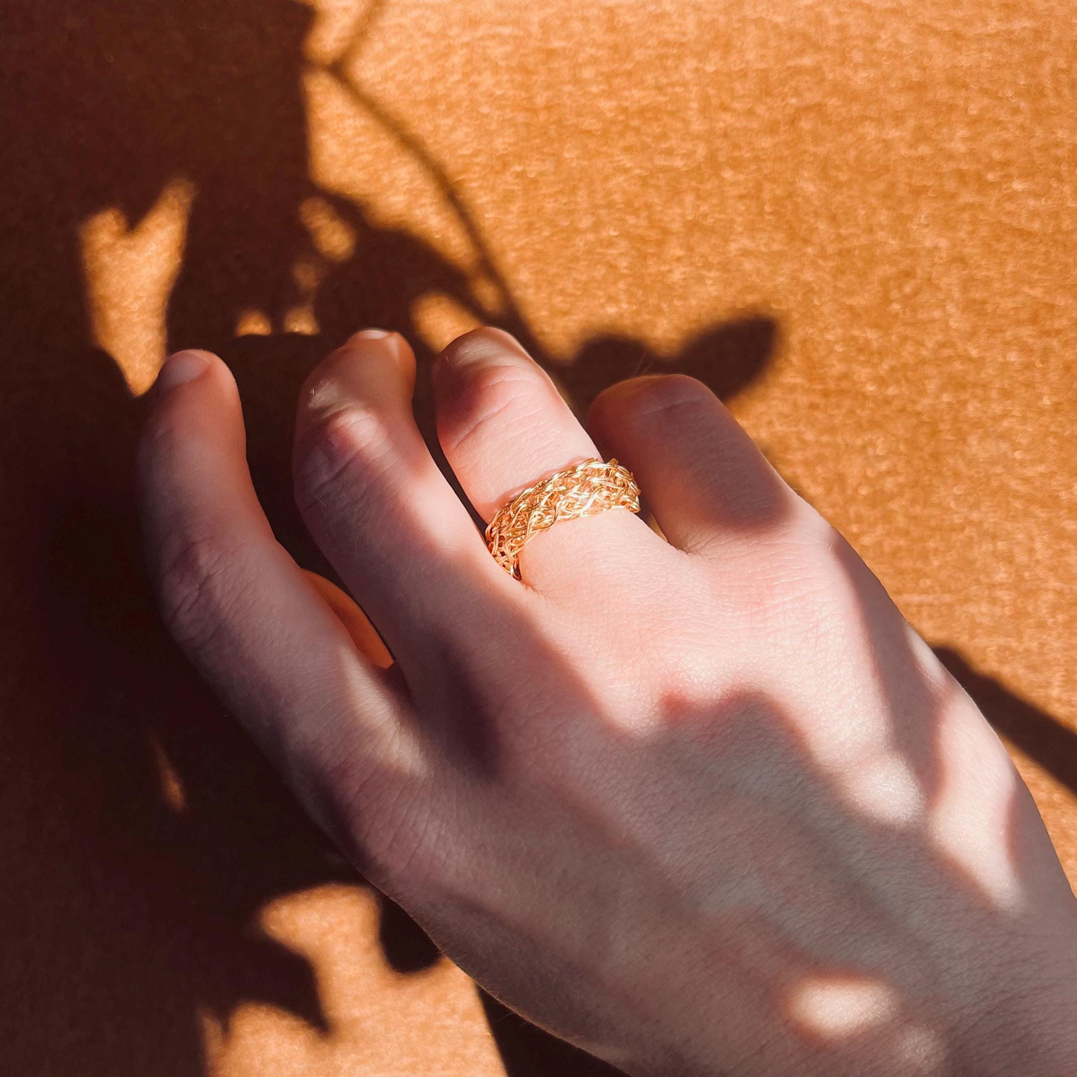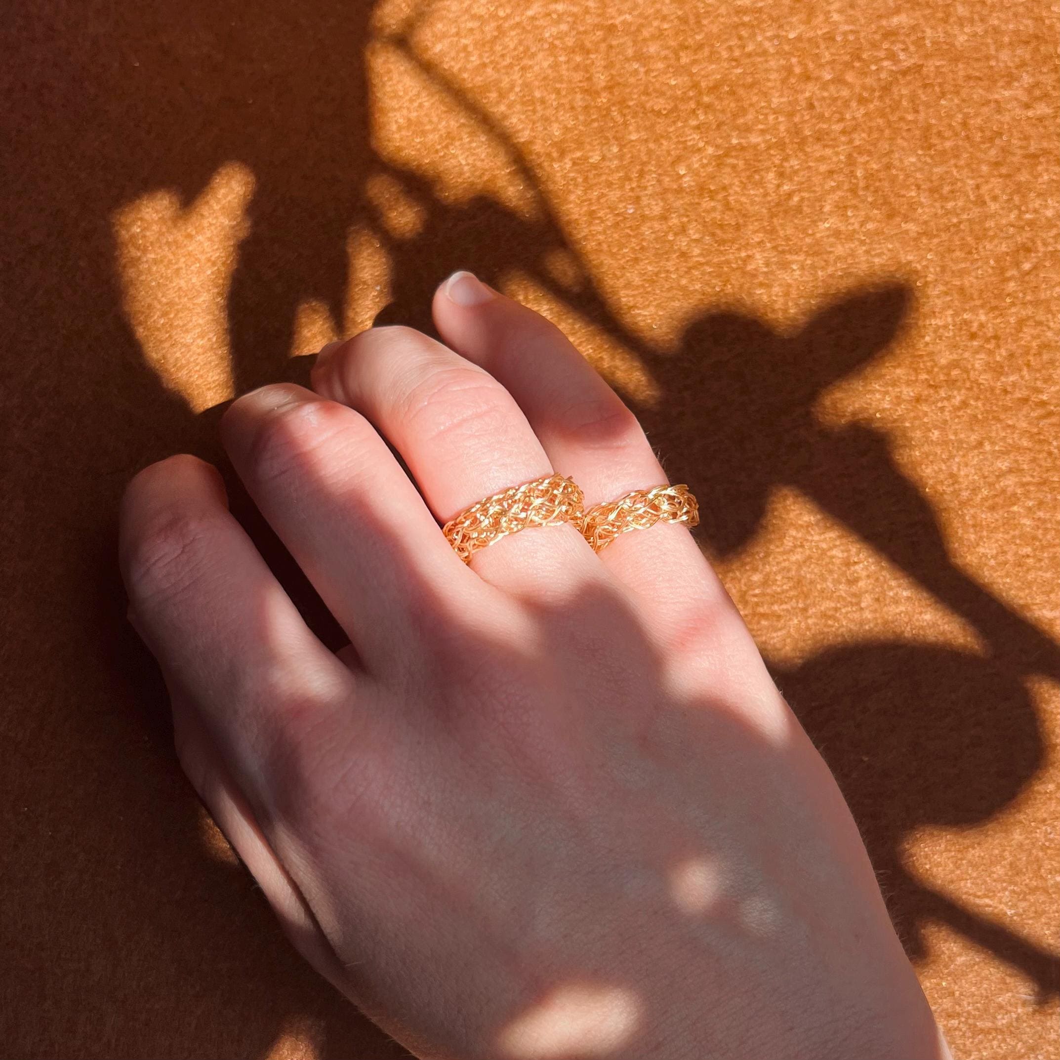 Elevate your everyday look with this handmade 18k gold plated croissant ring, a timeless piece designed for those who love effortless elegance. Crafted from double woven wire gold plating, it combines artisanal texture with a sleek dainty gold midi ring silhouette that layers beautifully with other bands or shines on its own. Perfect as a minimalist stacking gold ring or as a delicate statement, this versatile design is both modern and classic.