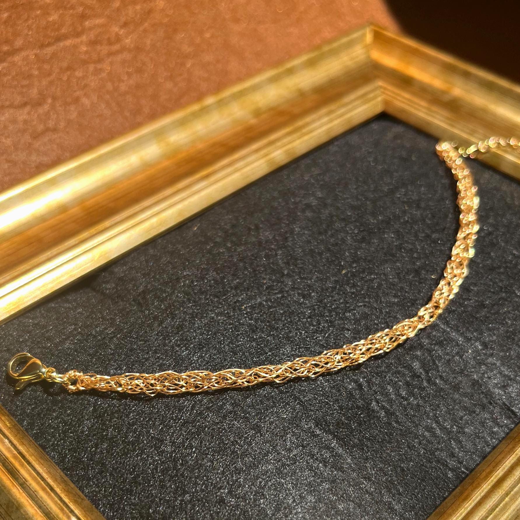 A timeless gold rope bracelet, handmade in Barcelona from 18k gold-plated knit wire. This minimalist gold bracelet blends delicate craftsmanship with Mediterranean artistry, creating a piece that feels both luxurious and effortless. Each bracelet is hand-knitted with 18k gold plated copper wire, secured with a stainless steel clasp and extension chain, ensuring both beauty and durability for everyday wear.