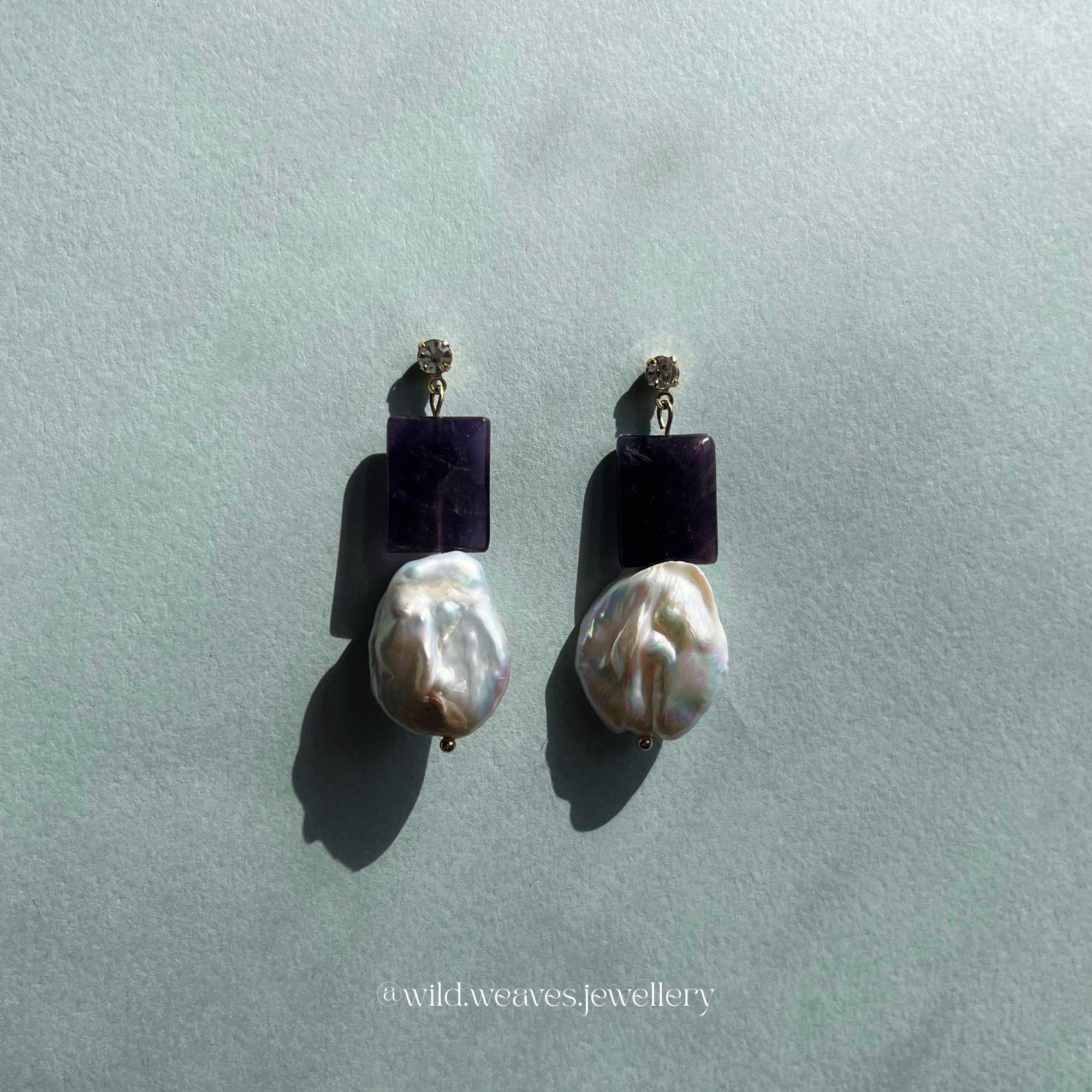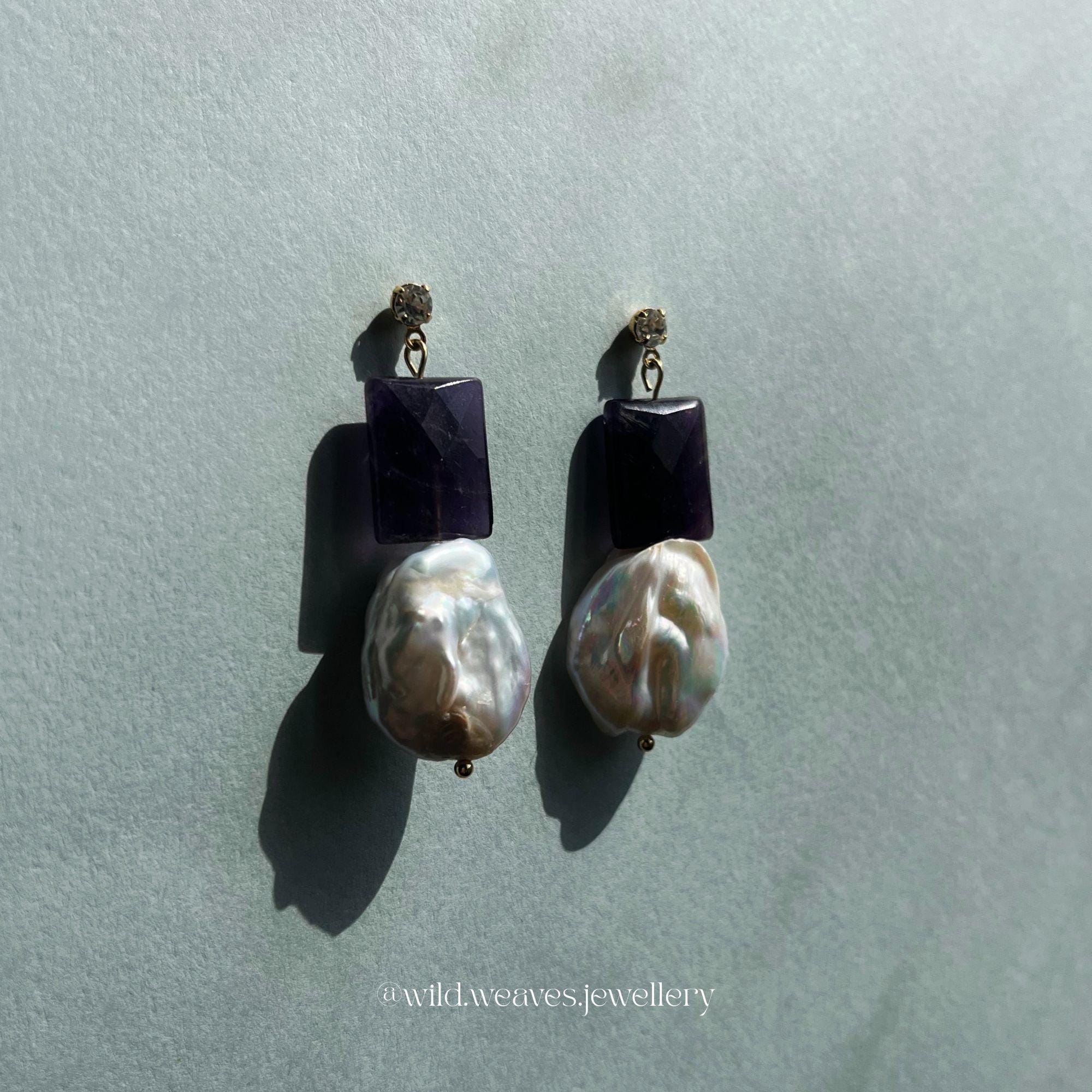 The contrast between the deep purple amethyst and the iridescent keshi pearl creates a sophisticated yet artistic look, perfect for both evening wear and special occasions. Lightweight yet impactful, these drop earrings are designed to make you stand out effortlessly.