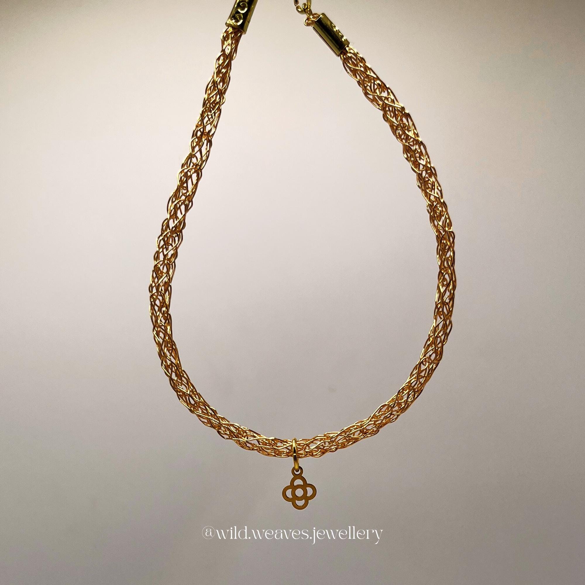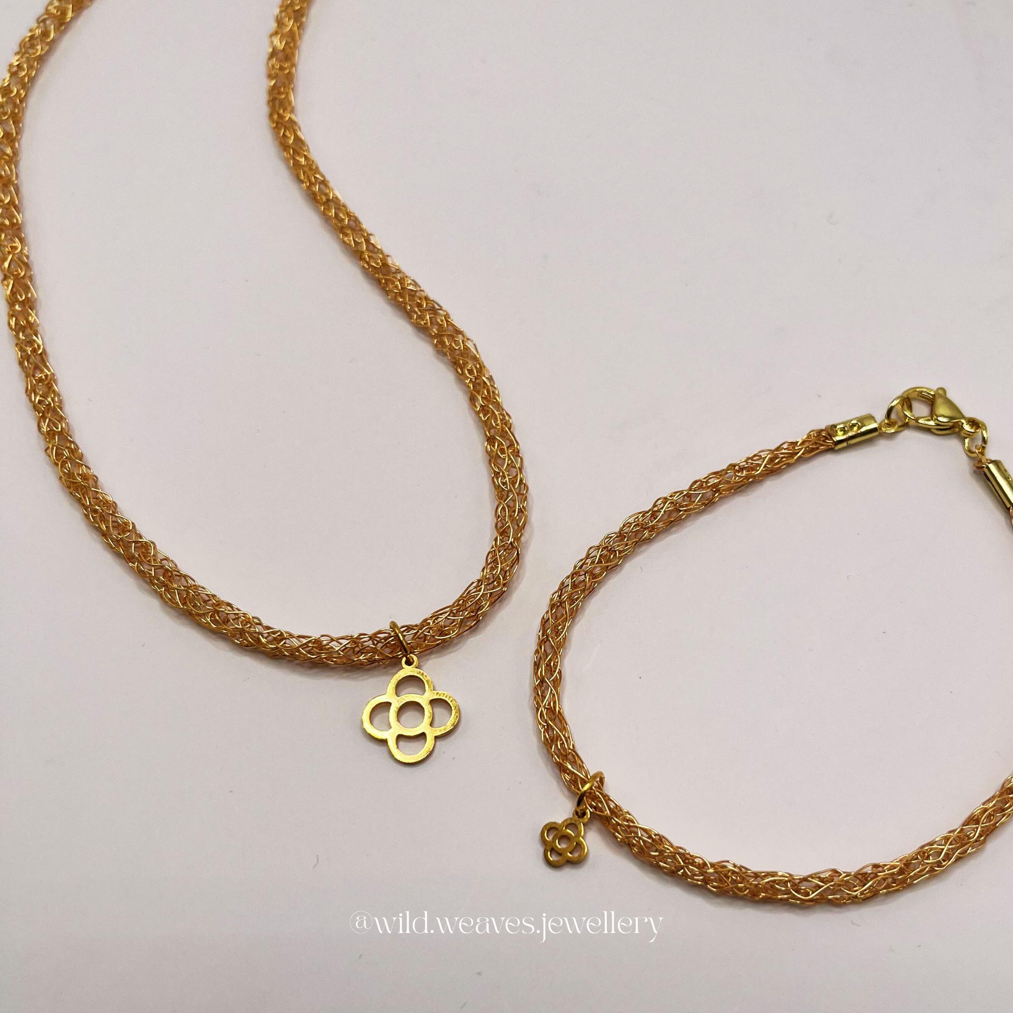 Hand-knitted 18k gold plated charm bracelet inspired by Barcelona’s Panot de Flor symbol. This artisan gold wire chain bracelet celebrates craftsmanship and culture: a delicate, handmade design that brings the warmth of Mediterranean artistry to your wrist. Perfect as an everyday elegant bracelet or a thoughtful gift for her.