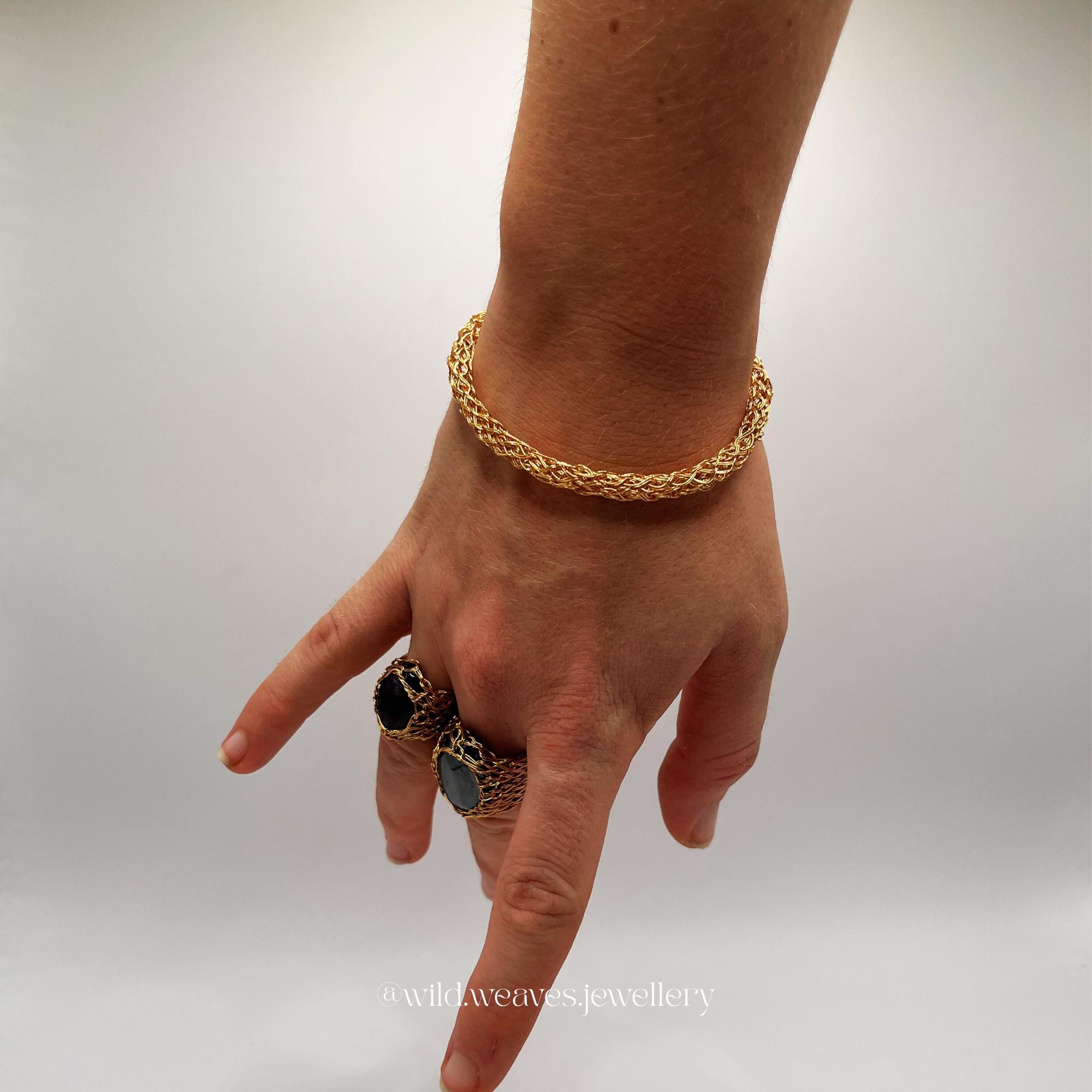 Available in three unique finishes: radiant gold, sleek silver, or a mixed metal design combining both. This piece embodies balance, strength, and subtle luxury. The double-knitted technique adds texture and depth, making it as durable as it is refined.