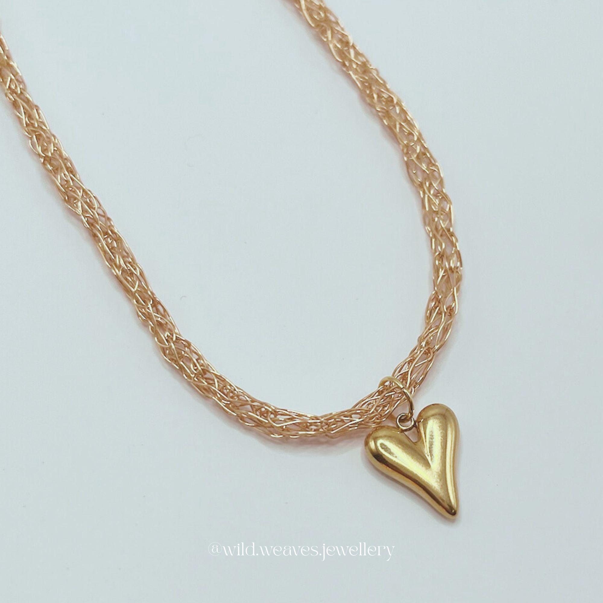 Knitted 18k gold plated necklace with heart pendant