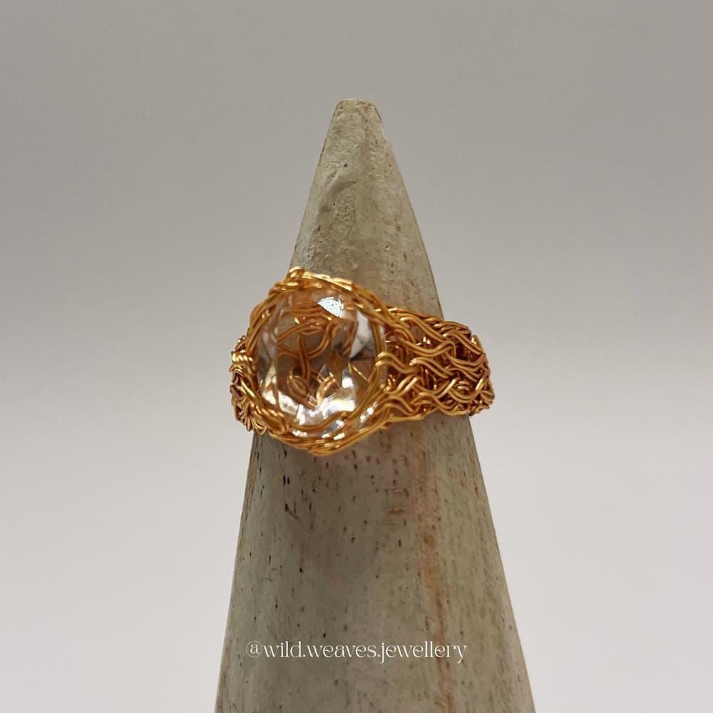 Knitted 18k gold plated clear crystal cocktail ring