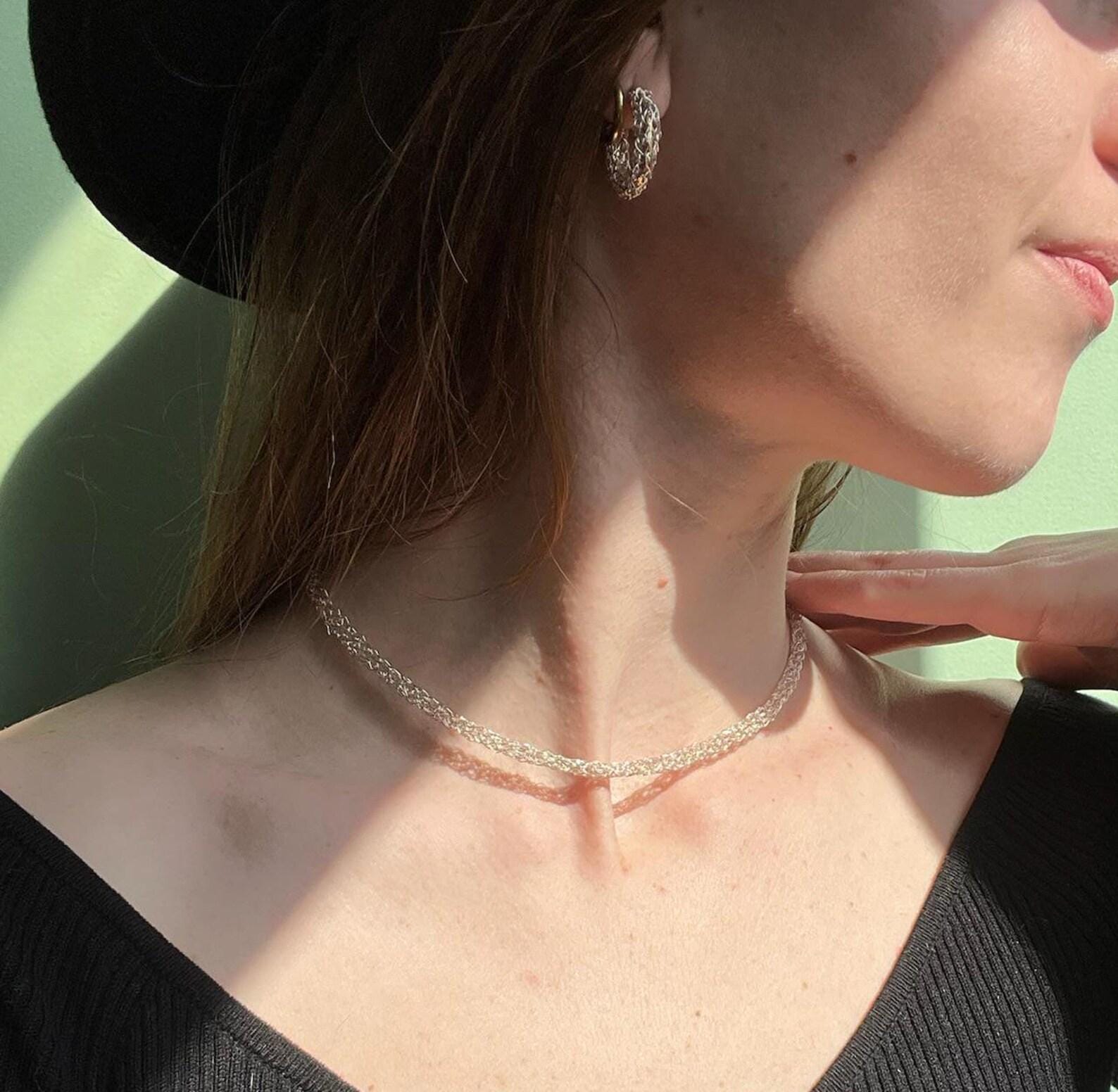 925 sterling silver plated knitted Choker Necklace with matching hoops
