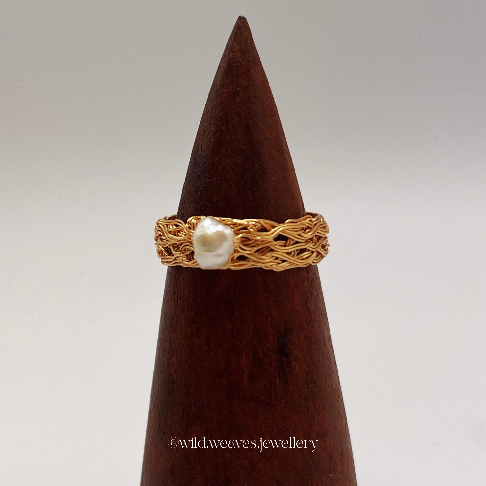 18k gold plated knitted Pearl Ring